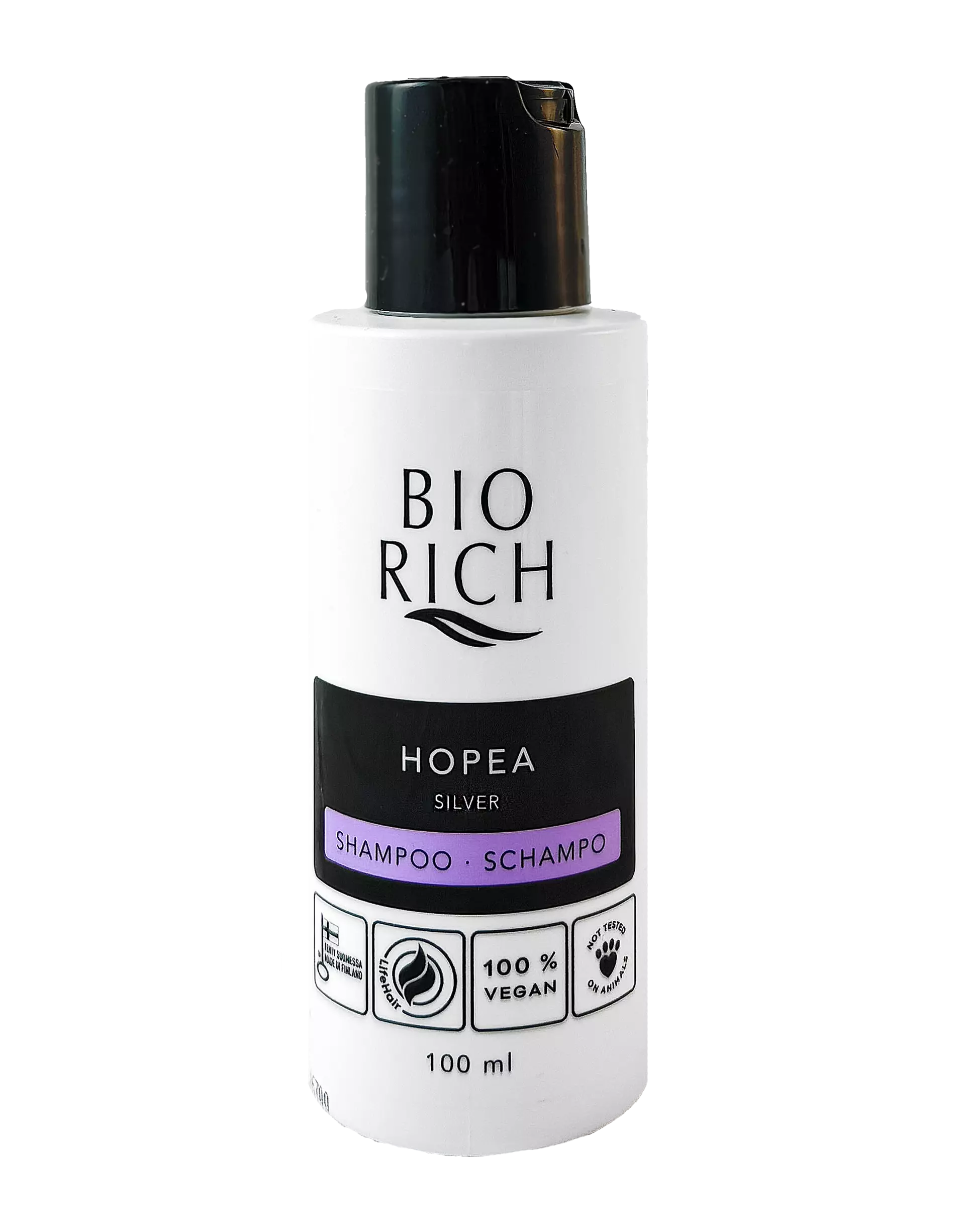 Hopeashampoo vaalennetuille, luonnostaan vaaleille tai harmaille hiuksille.