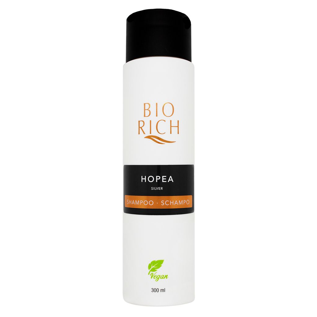 Bio Rich hopeashampoo vaalennetuille, luonnostaan vaaleille tai harmaille hiuksille. Kirkastaa vaaleat sekä luonnollisesti harmaantuneet hiukset. Korostaa hiusten vaaleutta ja poistaa tehokkaasti keltaisuutta. Sisältää hiuksia ja hiuspohjaa kosteuttavaa aloe veraa. Käyttöohjeet: vaahdota shampoo huolellisesti kosteisiin hiuksiin ja anna vaikuttaa tarvittaessa 2 – 3 minuuttia, huuhtele pois.