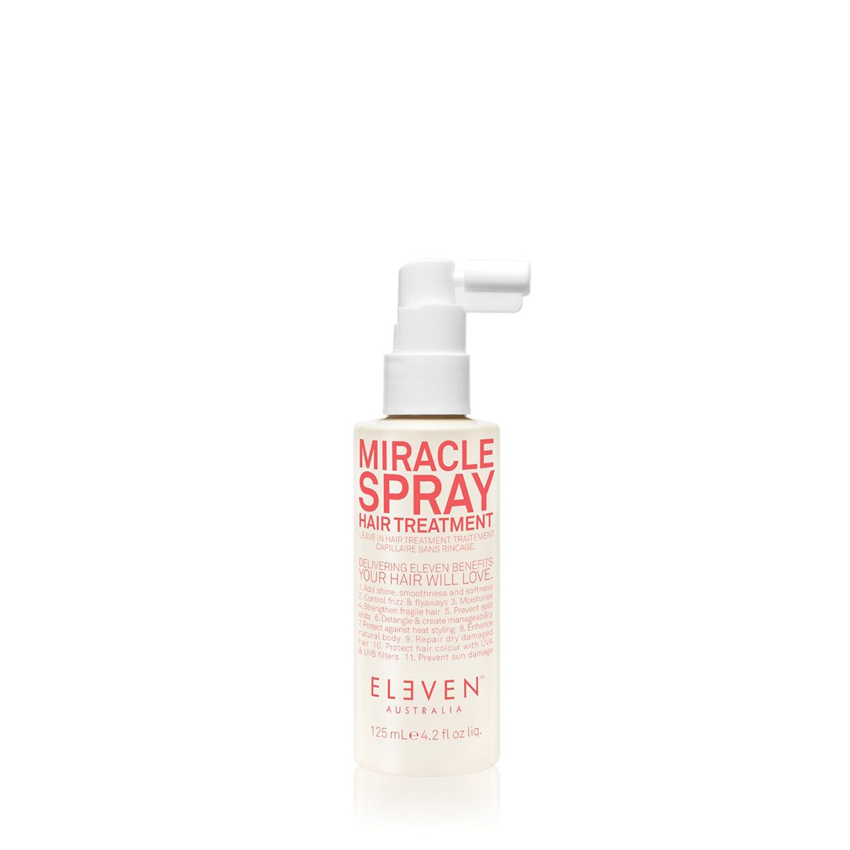 Hoitosuihke on ravitseva ja täyteläinen monitoimituote, joka vahvistaa sekä suojaa hiuksia tehokkaasti. Se sisältää tehokkaan yhdistelmän luonnollisia ainesosia, kuten hydrolysoitua vehnä- ja maissiproteiinia, jotka yhdessä vahvistavat, korjaavat sekä hoitavat hiuksia. Suihkeen sisältämä sitruunahappo tasapainottaa hiusten sekä hiuspohjan pH:ta ja hydrolysoitu soijaproteiini antaa hiuksille volyymia. Miracle Spray Hair Treatment -suihkeessa on raikas melonin tuoksu ja se sopii kaikille hiuslaaduille. Suihke on täydellinen pohjatuote jokaiselle tyylille tehden hiuksista kosteutetut sekä sileät, jättäen lopputuloksen kuitenkin ilmavaksi. Samat MIRACLE HAIR TREATMENT -hoitovoiteen rakastetut ominaisuudet suihkutettavassa muodossa!