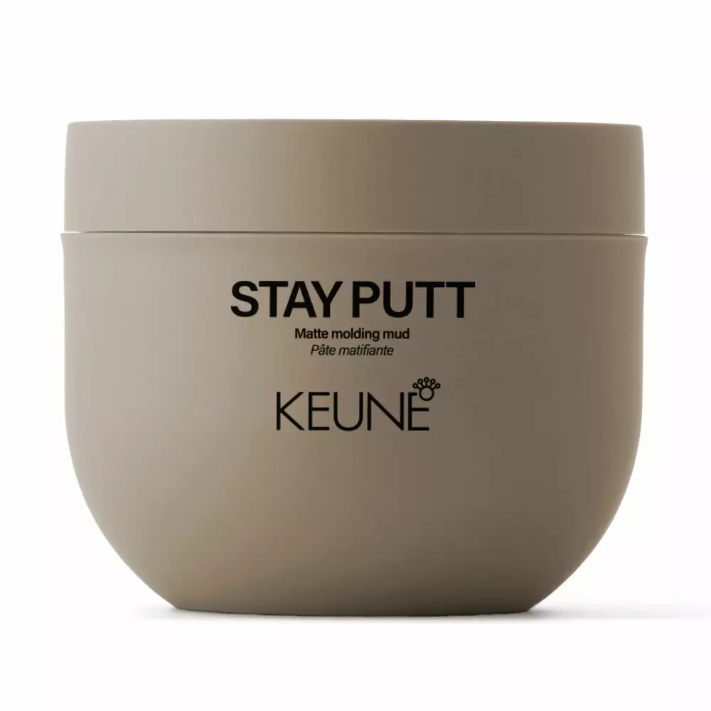 Stay Putt on kermainen, muotoiltava mattapintainen vaha, joka on rikastettu sheavoilla. Pito 2, kiilto 1. Käyttöohjeet: Hiero pieni määrä kämmeniin ja levitä kuiviin hiuksiin.
