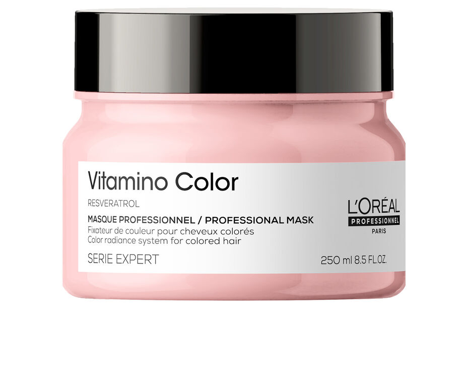 Ammattimainen kiiltoa antava hiusnaamio värjätyille hiuksille. Koostumus, joka sisältää resveratrolia, suojaa hiuksia katkeilua vastaan samalla säilyttäen kiillon värikäsitellyissä hiuksissa. Vain minuutissa hiukset tuntuvat optimaalisesti ravituilta ja pehmeämmiltä. Käyttöohjeet: Levitä tasaisesti vastapestyihin ja pyyhekuiviin hiuksiin Vitamino Color -shampoopesun jälkeen. Anna vaikuttaa 1 minuutin ajan. Huuhtele huolellisesti. Jos tuotetta joutuu silmiin, huuhtele ne välittömästi runsaalla vedellä.