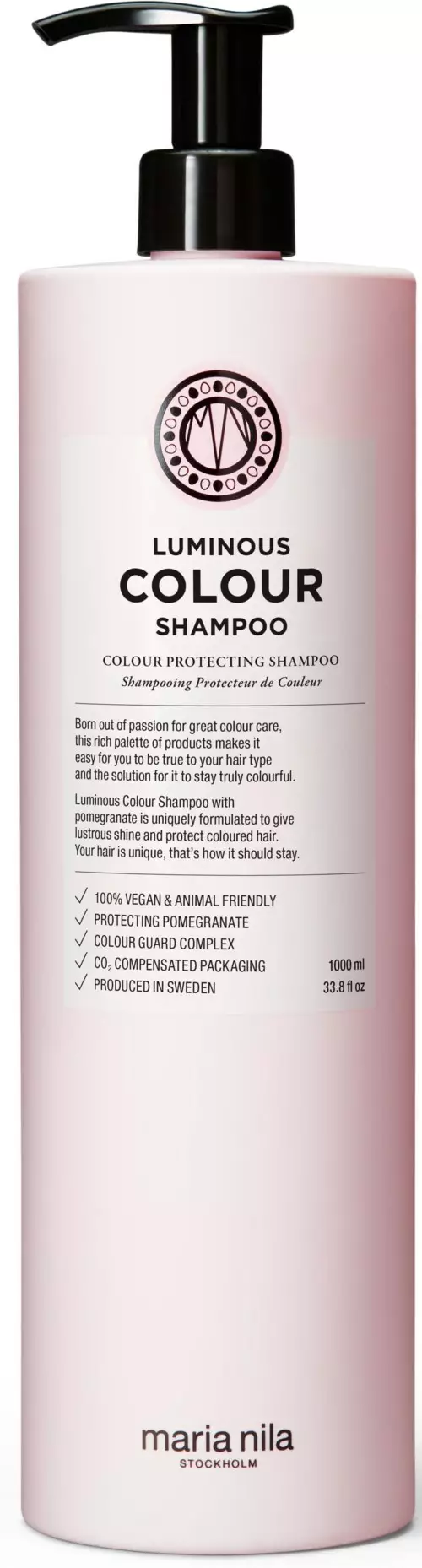 Shampoo sisältää granaattiomenauutetta ja Colour Guard Complex -yhdistettä, jotka suojaavat hiuksia ja hiuspohjaa sekä auttavat vähentämään värien haalistumista pesun, lämpökäsittelyn, UV-säteilyn ja vapaiden radikaalien vaikutuksesta. Luminous Colour Shampoo tuoksuu hedelmäiseltä omenalta, mustikalta ja persikalta. Käyttöohje: Levitä kosteisiin hiuksiin, hiero hiuspohjaan ja hiuksiin. Huuhtele ja toista.