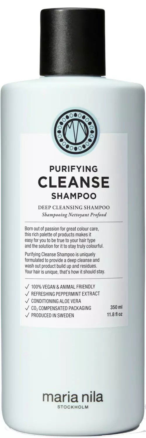 Syväpuhdistava shampoo, joka poistaa tuotejäämät ja epäpuhtaudet tehokkaasti hiuksista.