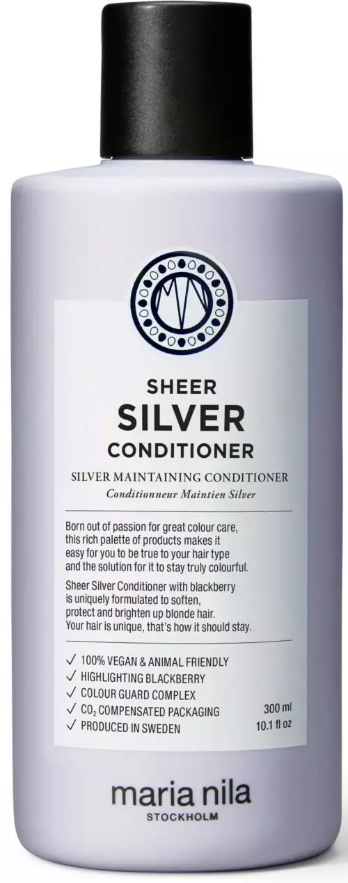 Selvittävä hoitoaine, joka pehmentää, palauttaa kosteuden ja vahvistaa hiusten rakennetta. Violetti pigmentti ja karhunvatukkauute ehkäisevät kullan sävyjä.
