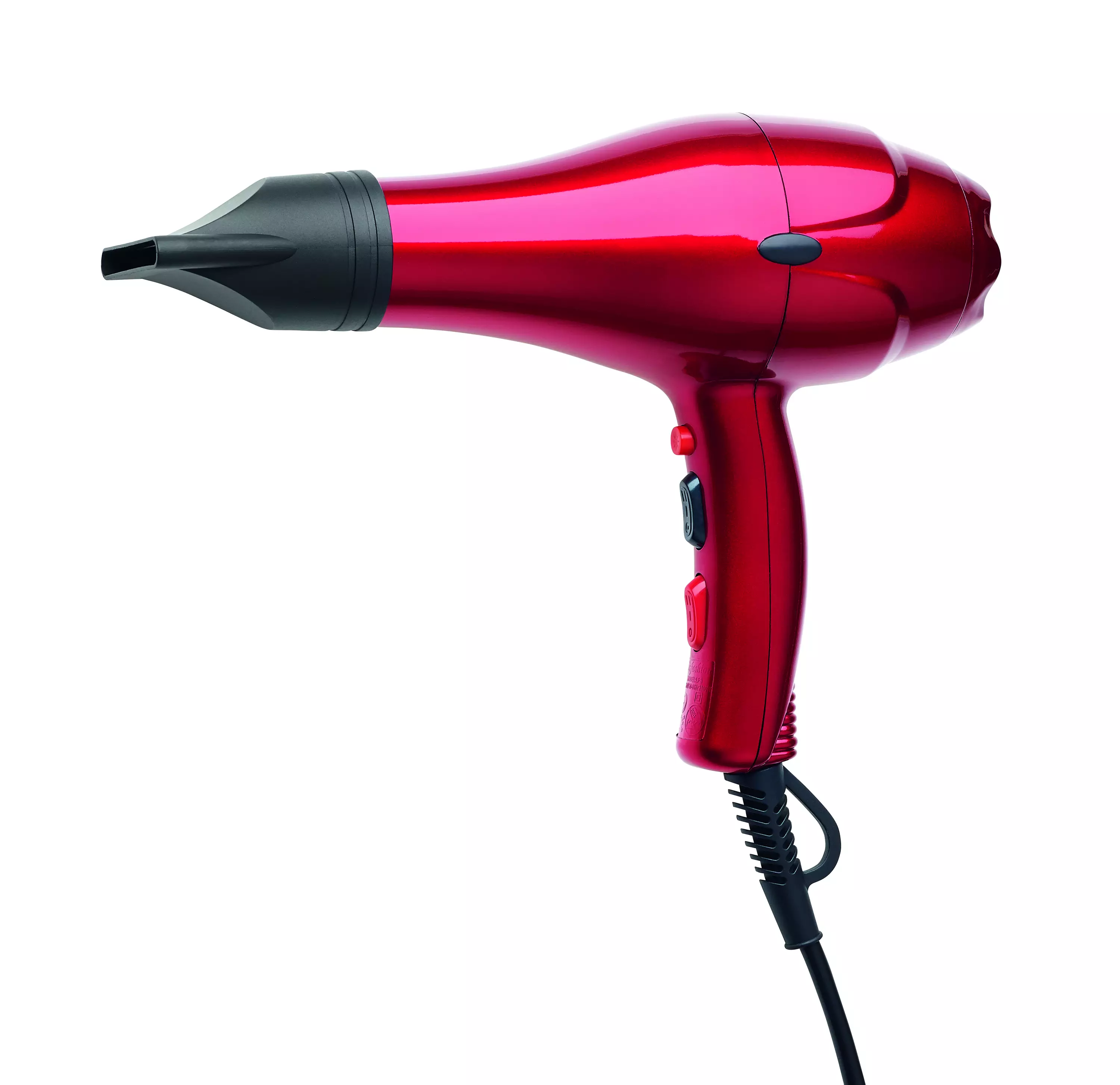 Fööni metallin punainen 2000W. -Paino: 540g -3 lämpötilaa -2 nopeutta -kylmäpuhallus -2 suutinta