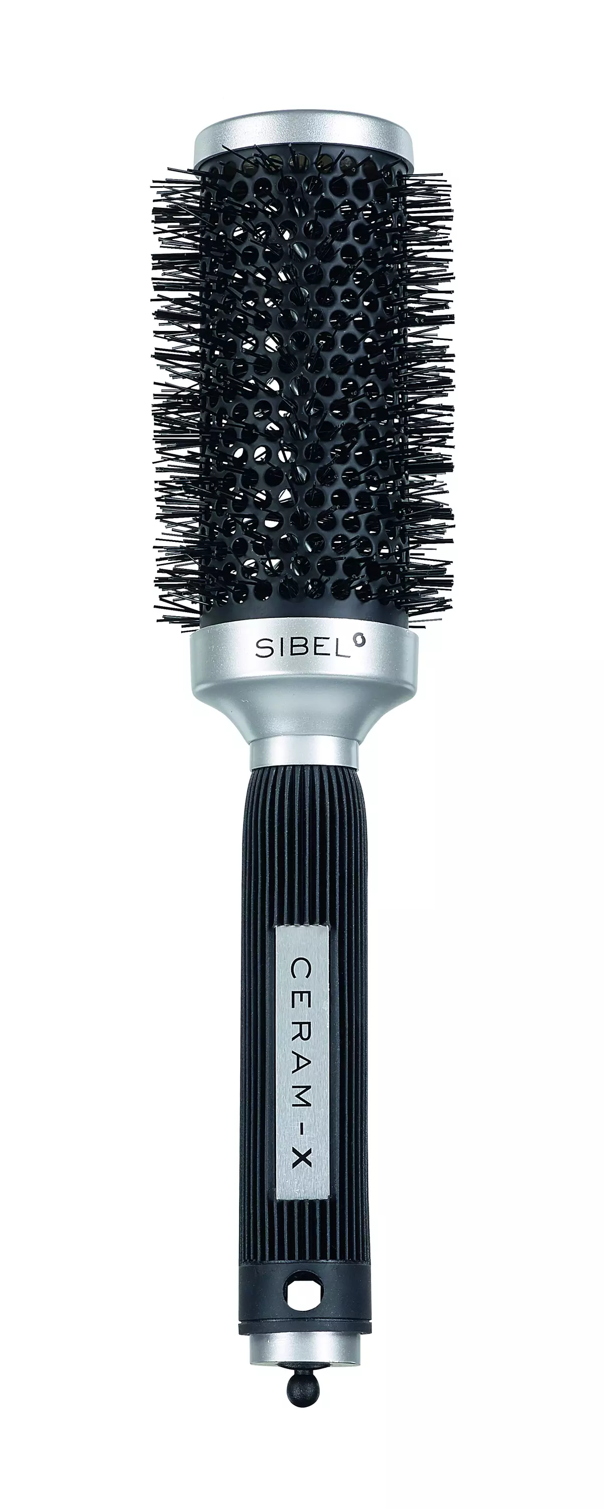 Ceram-x lämpöharja, jossa keramiikkapinnoitettu pohja ja antistaattiset nailon harjakset. Sopii kaikille hiustyypeille. 26,2cm pitkä, halkaisija 43mm.