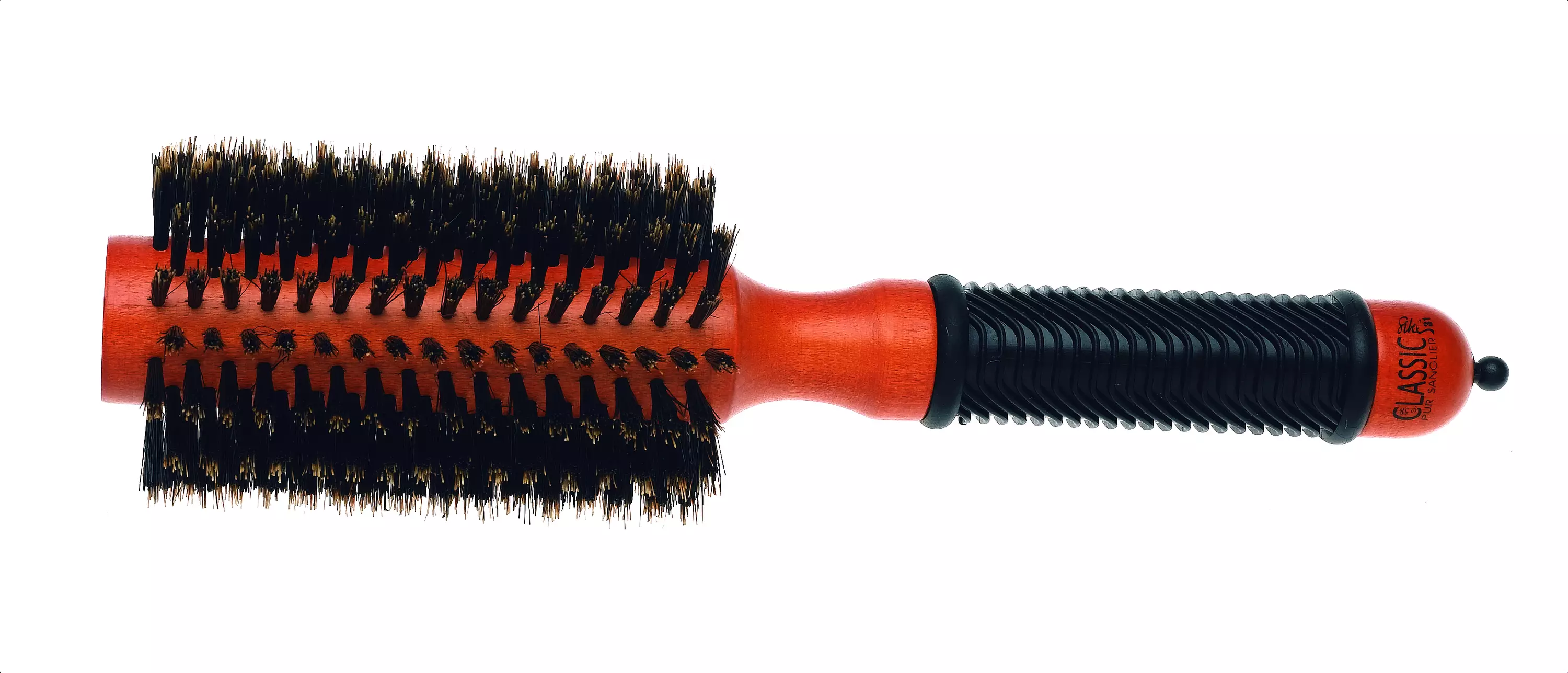 Pyöröharja villisian harjaksilla ohuille ja normaaleille hiuksille. Villisian harjakset stimuloivat hiuspohjan öljyjä, mikä tuo hiuksiin kiiltoa. Puinen harja ei kestä lämpöä, halkaisija 58mm.