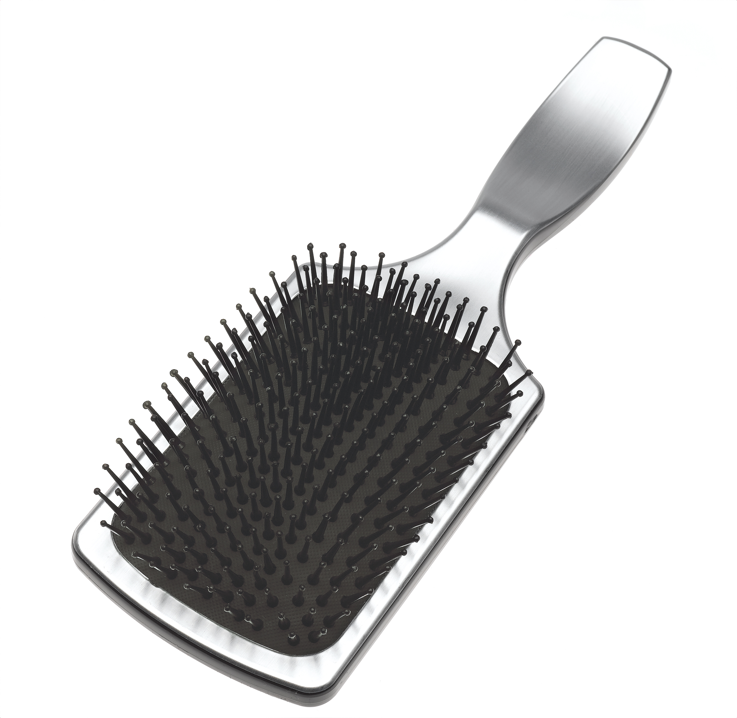 Leveä kumipohjaharja pitkien ja paksujen hiusten tehokkaaseen selvittämiseen ja nopeaan föönaamiseen. Harjan nuppipäiset nailonharjakset, joustava kumipohja ja kevyt sekä kestävä alumiinivarsi tekevät harjasta miellyttävän käyttää.