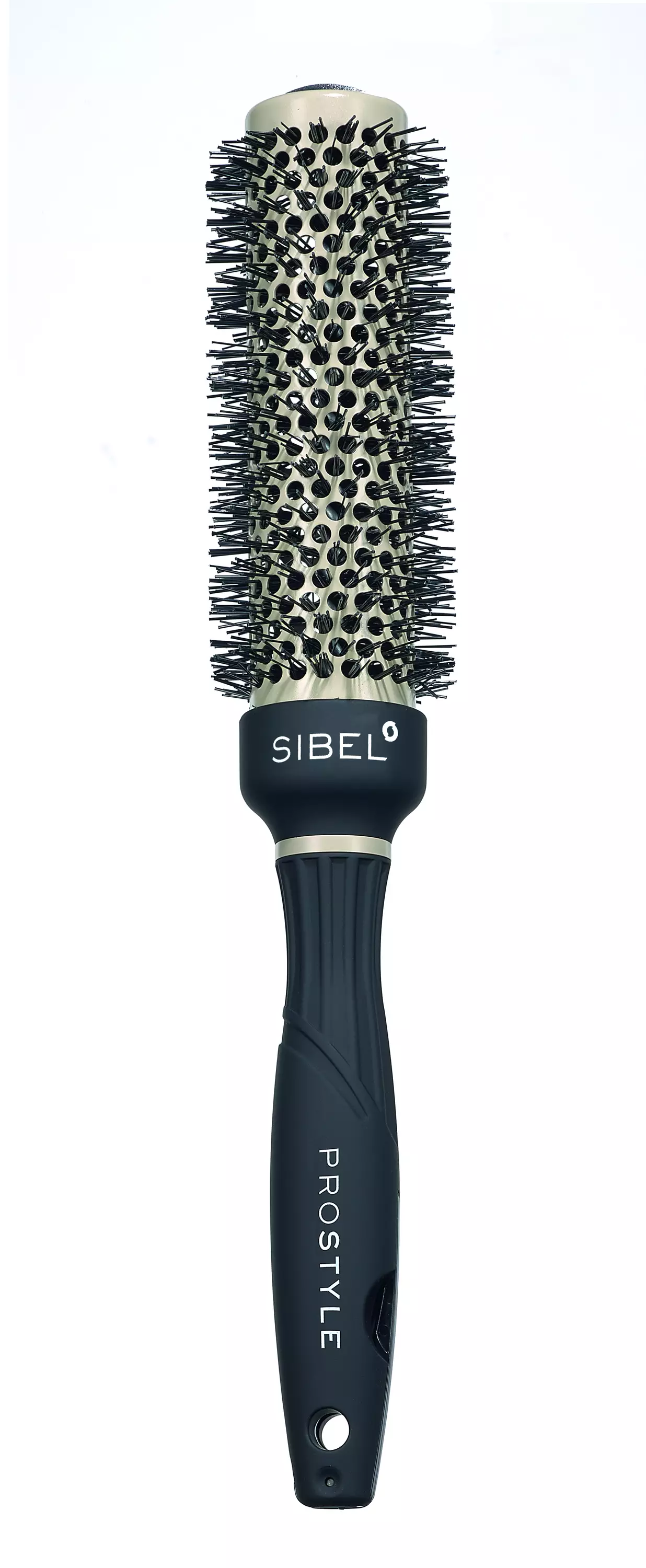 Profold lämpöharjan antistaattississa nailon harjaksissa on turmaliini- ja ionipinnoite lisäämään kiiltoa ja sileyttä hiuksiin. 29cm pitkä, hakaisija 33mm.