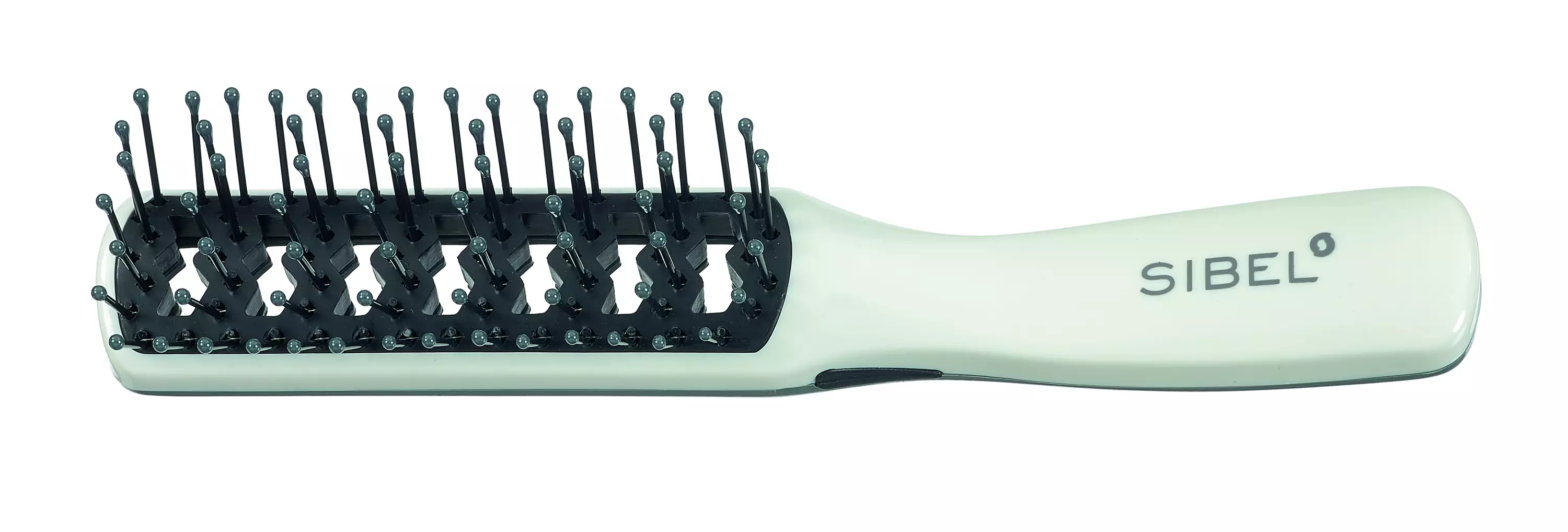 Antistaattinen muovinen harja, jossa pallokärkiset nailonharjakset. Harjaa voi käyttää föönauksessa muotoilunsa ansiosta. Sopii kaikille hiustyypeille, 21,1cm pitkä.