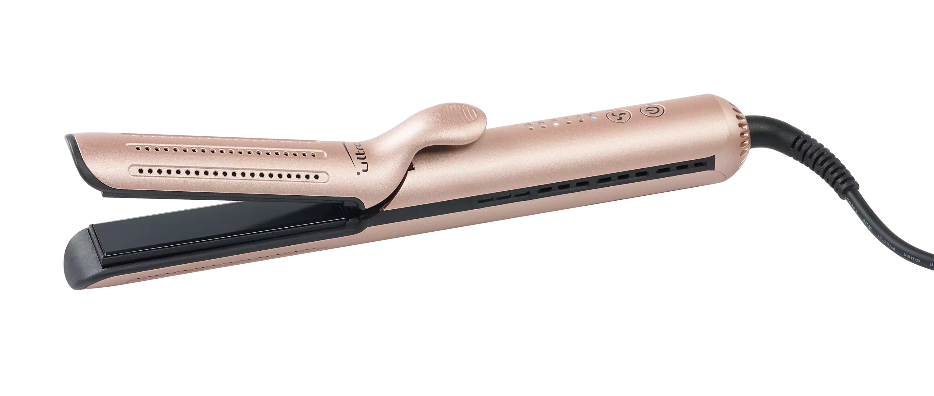 Ultronin uusin innovaatio Airflux yhdistää hiusten lämpömuotoiluun virkistävän tuulahduksen kylmää ilmaa! Airflux muotoiluraudalla luot pitkäkestoiset kampaukset, suorat tai kiharat, kaikki yhdellä raudalla. Titaaniset kelluvat levyt jakavat lämpötilan tasaisesti ja suoristavat hiukset nopeasti, tehokkaasti sekä hellävaraisesti. Raudan pyöreän muodon ansiosta luot helposti myös runsaat kiharat, jotka pysyvät pitkään: 360° ilma-aukot viilentävät hiukset välittömästi ja asettavat kiharat, kuten "cool shot" -toiminto hiustenkuivaajassa. Airflux Styler on ergonominen ja kevyt. Lämpötila on säädettävissä 140-220°C, joten se sopii kaikille hiustyypeille. - air cooling -teknologia - 360° ilma-aukot viilentävät ja asettavat kiharat - titaaniset kelluvat levyt - lämpölevyn koko 30 x 85 mm - mattapintainen pehmeä viimeistely - 5 lämpöasetusta: 140-220°C - automaattinen sammutus 30 minuutissa - LED-merkkivalo - 3 metrin pyörivä johto