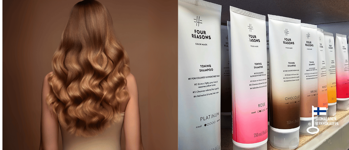Four Reasons Color Mask Toning Treatment Toffee on sävyttävä tehohoito vaaleanruskeille hiuksille. Tuotteen väripigmentit antavat hiuksille kullanruskean vivahteen ja ylläpitävät hiusväriä. Kasvipohjaiset proteiinit ja aminohapot vahvistavat hiuksia ja antavat upean kiillon. Hiusväri pysyy hehkuvan eloisana, hiukset terveinä ja hyvinvoivina. Huomaa, että hiusten huokoisuus, kunto ja nykyinen sävy vaikuttavat lopputuloksen tasaisuuteen.