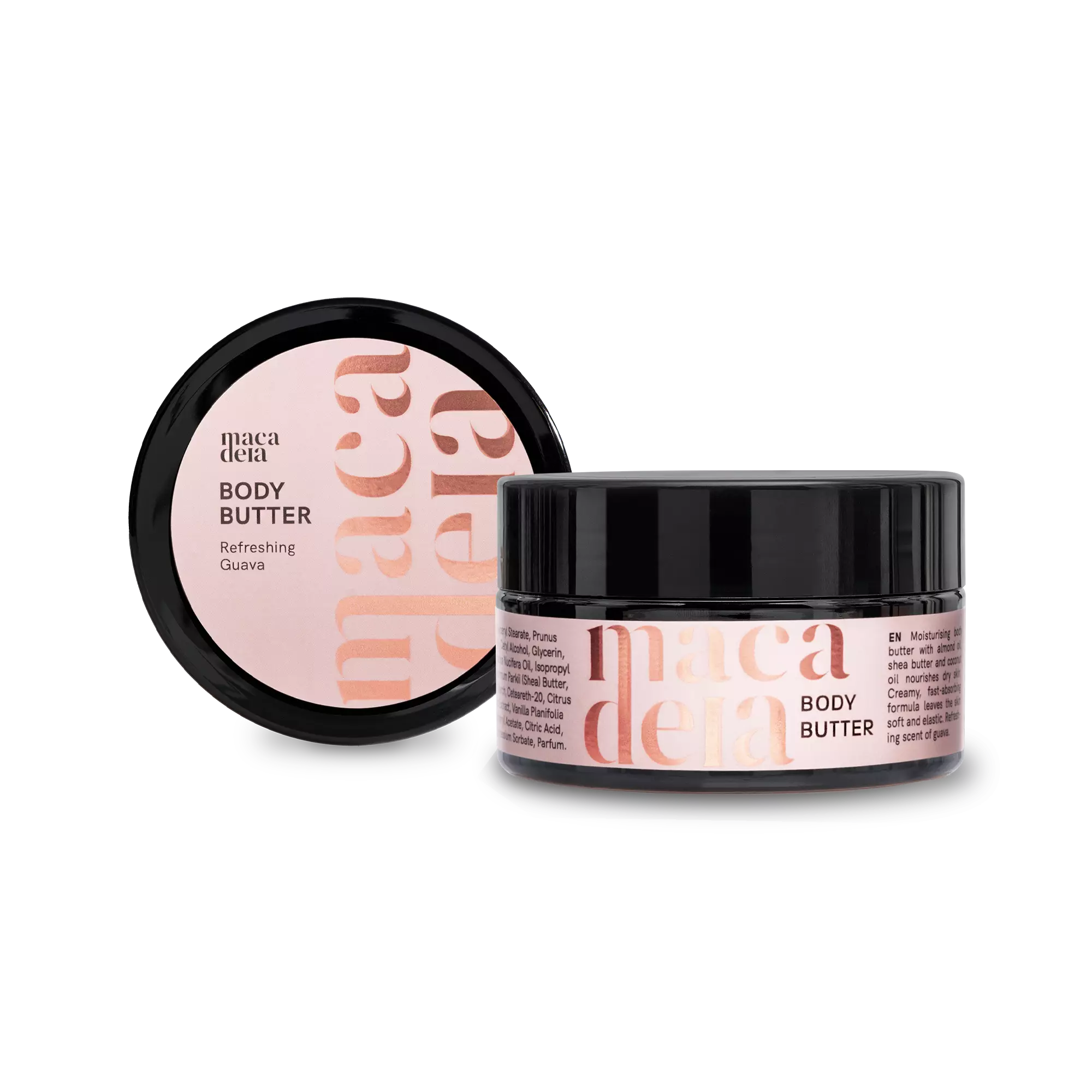 Refreshing Guava – vartalovoi kosteuttaa ja ravitsee tehokkaasti kuivaa ihoa sisältämänsä manteliöljyn, sheavoin ja kookosöljyn avulla. Makea manteliöljy, joka on täynnä ihon suojakerrosta tukevia rasvahappoja sekä ravitsevia vitamiineja, rauhoittaa, kosteuttaa ja edistää ihon uudistumista. Antimikrobisia ominaisuuksia omaava kookosöljy hoitaa sekä ravitsee erityisesti kuivaa ihoa. Runsaasti A- ja E-vitamiinia sekä tyydyttymättömiä rasvahappoja sisältävä sheavoi auttaa ihoa puolustamaan vapaiden happiradikaalien aiheuttamilta vaurioilta sekä ehkäisee kosteuden haihtumista iholta. Refreshing Guava – vartalovoissa on täyteläinen koostumus, joka imeytyy nopeasti. Iho tuntuu pehmeältä ja kimmoisalta ilman tahmaista tunnetta. Sopii hyvin kaikille ihontyypeille, erityisesti kuivalle iholle, joka tarvitsee hieman enemmän kosteutusta ja hoitoa. Vartalovoissa on virkistävä guavan tuoksu.