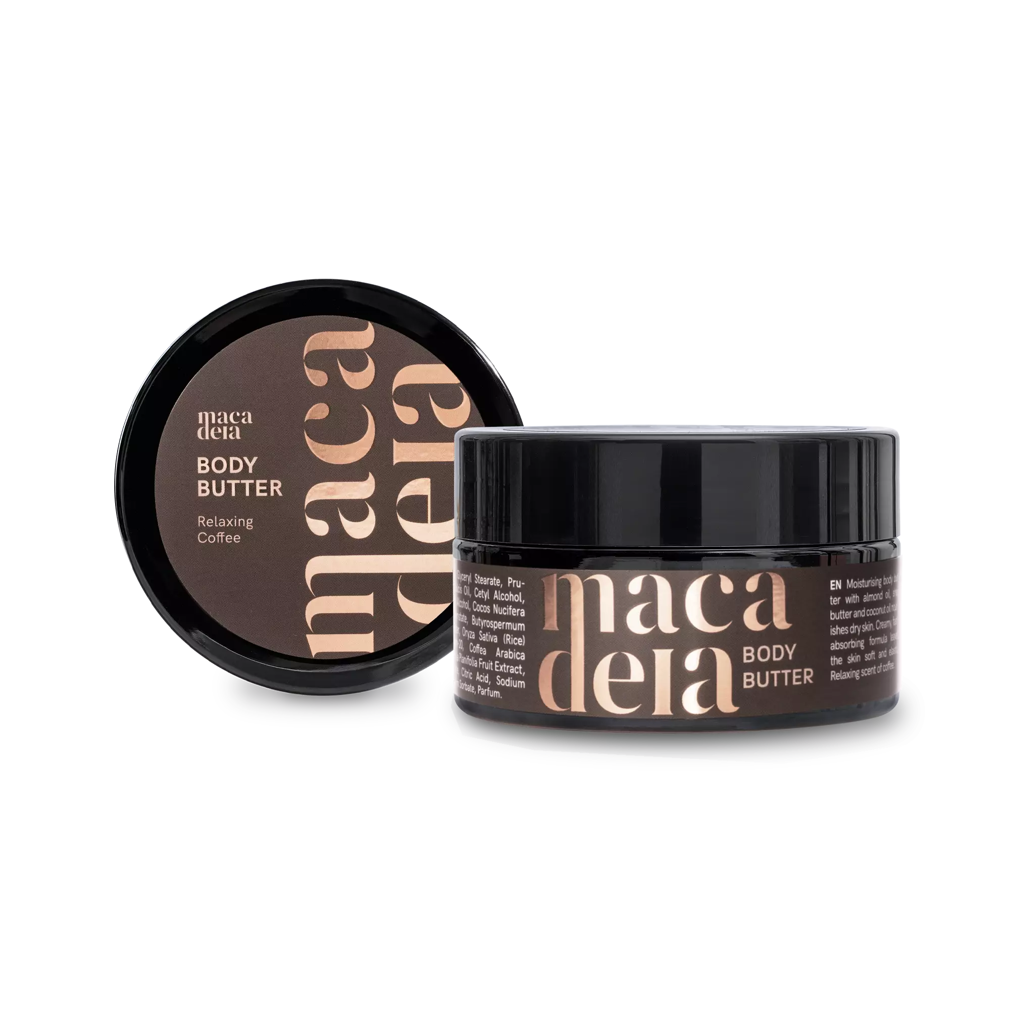Relaxing Coffee – vartalovoi kosteuttaa ja ravitsee tehokkaasti kuivaa ihoa sisältämänsä manteliöljyn, sheavoin ja kookosöljyn avulla. Makea manteliöljy, joka on täynnä ihon suojakerrosta tukevia rasvahappoja sekä ravitsevia vitamiineja, rauhoittaa, kosteuttaa ja edistää ihon uudistumista. Antimikrobisia ominaisuuksia omaava kookosöljy hoitaa sekä ravitsee erityisesti kuivaa ihoa. Runsaasti A- ja E-vitamiinia sekä tyydyttymättömiä rasvahappoja sisältävä sheavoi auttaa ihoa puolustamaan vapaiden happiradikaalien aiheuttamilta vaurioilta sekä ehkäisee kosteuden haihtumista iholta. Relaxing Coffee – vartalovoissa on täyteläinen koostumus, joka imeytyy nopeasti. Iho tuntuu pehmeältä ja kimmoisalta ilman tahmaista tunnetta. Sopii hyvin kaikille ihontyypeille, erityisesti kuivalle iholle, joka tarvitsee hieman enemmän kosteutusta ja hoitoa.