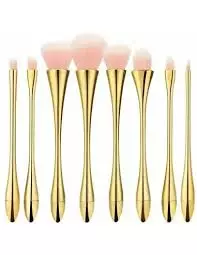 8 kultaisen siveltimen setti. Vaaleanpunainen, valkoiset harjakset ja kultainen kahva.