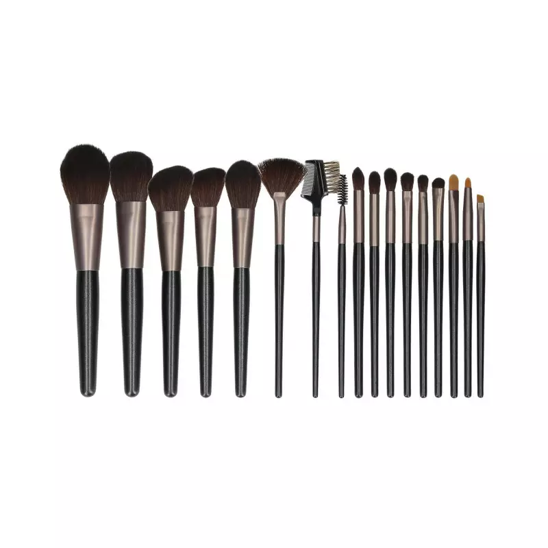 Tyylikäs ja ainutlaatuinen MIMO-meikkisivellinsetti. Monikäyttöinen 18-osainen meikkisivellinsetti, joka sisältää siveltimiä kasvo- ja silmämeikkiin. Siveltimet sopivat täydellisen arki- tai juhlameikin luontiin. Varustettu kevyillä puisilla kahvoilla joissa on kaunis helmiäisviimeistely. Pehmeät, suklaanruskeat taklonharjakset sopivat kaikille ihotyypeille.