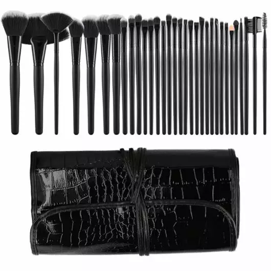 Setti sisältää: 4 puuterisivellintä, ripsipuikko, kulmakarvapuikko, 11 luomivärisivellintä, 2 luomivärilevitintä, 2 peitevoidesivellintä, 2 kulmakarvasivellintä, 3 muotoilusivellintä, 2 viuhkasivellintä, 2 rajaussivellintä, 2 huulipunasivellintä. Monitoimisiveltimien kokoelma mahdollistaa sekä päiväkäyttöön että näyttävämpiin iltatyyleihin luomisen. Harjakset, kahva ja korkki ovat kaikki mustia, mikä tekee siveltimistä elegantteja ja klassisia Setti täydentyy mustalla kotelolla.