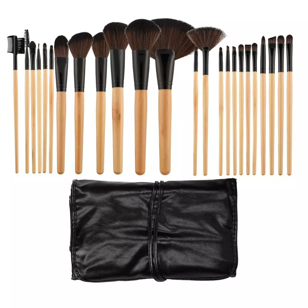 Monikäyttöinen 24-osainen meikkisivellinsetti, joka sisältää siveltimiä kasvo- ja silmämeikkiin.