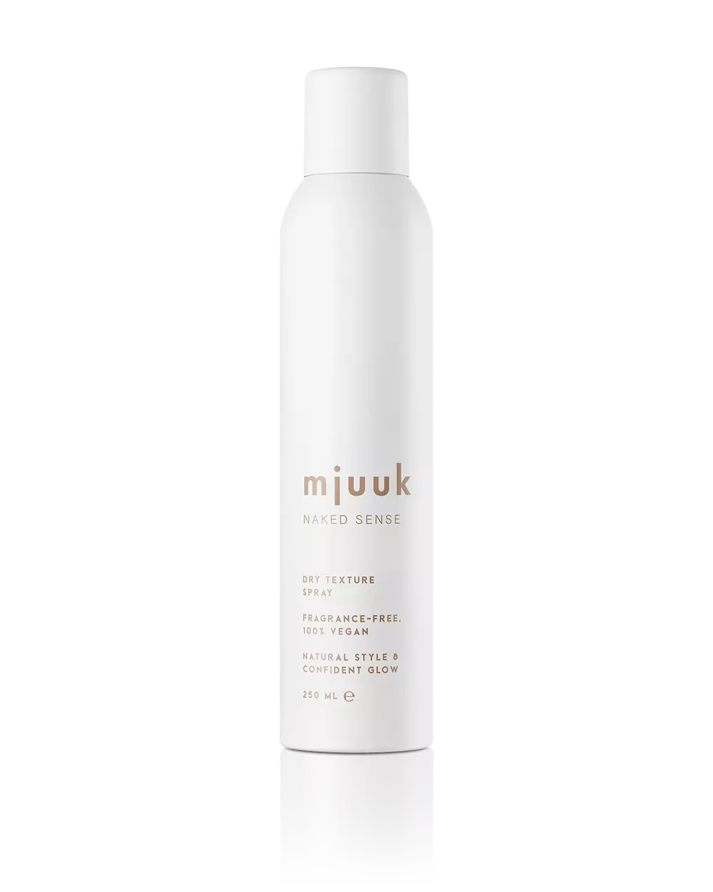 Hajusteeton Mjuuk Naked Sense Dry Texture Spray on kevyt rakennetta lisäävä suihke, joka antaa hiuksille luonnollista volyymia ja pitoa. Dry Texture Sprayn avulla luot uuden hiustyylin nopeasti. Voit suihkuttaa sitä juuriin antaaksesi volyymia tai pituuksiin saadaksesi lisää rakennetta. Tuote soveltuu kaikille hiustyypeille. Käyttöohjeet: Ravista hyvin ennen käyttöä. Saadaksesi halutun rakenteen, suihkuta kuiviin hiuksiin kerroksittain noin 15 cm päästä keskittyen hiustyveen ja hiuspohjaan. Voit lisätä tuotetta päivän aikana tarvittaessa.
