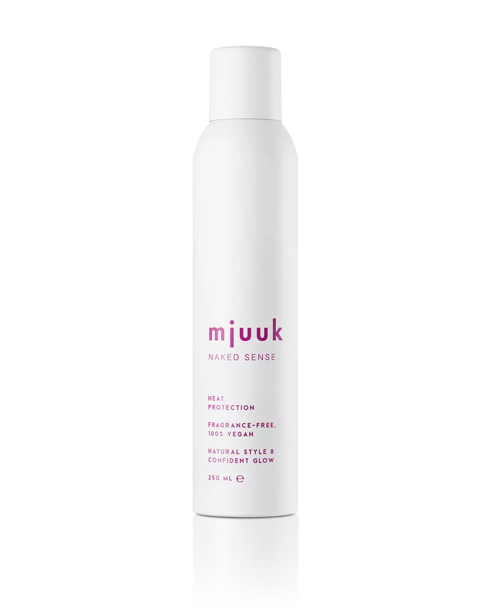 Hajusteeton Mjuuk Naked Sense Heat Protection suojaa hiuksia tehokkaasti muotoiluvälineiden kuumuuden aiheuttamilta vaurioilta (jopa 210°C lämpötilalta). Antaa kevyttä pitoa muotoiluun. Käyttöohjeet: Ravista ennen käyttöä. Suihkuta pyyhekuiviin tai kuiviin hiuksiin noin 20 cm päästä ja kampaa hiukset ennen muotoilua.
