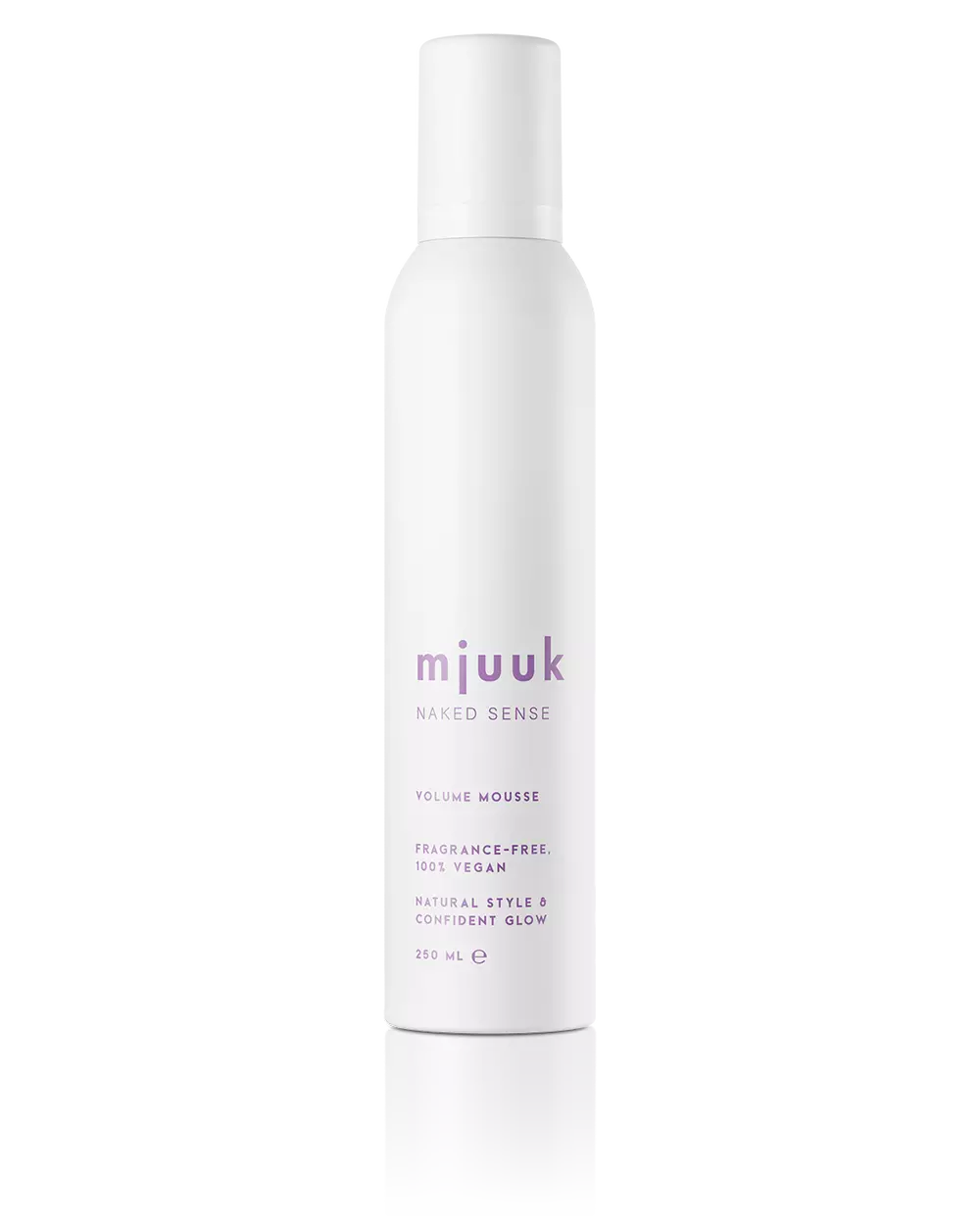 Hajusteeton Mjuuk Naked Sense Volume Mousse antaa volyymiä ja muotoiltavuutta ilman, että hiukset tuntuvat raskailta. Hiuksista tulee kimmoisat ja elinvoimaiset tyvestä latvaan. Sisältää lämpösuojan ja kosteussuojan. Käyttöohjeet: Ravista hyvin ennen käyttöä. Levitä vaahtoa pestyihin, pyyhekuiviin hiuksiin. Kampaa hiukset tyvestä latvaan, jotta vaahto levittyy tasaisesti. Muotoile hiukset normaalisti. Vaahtoa ei huuhdella.