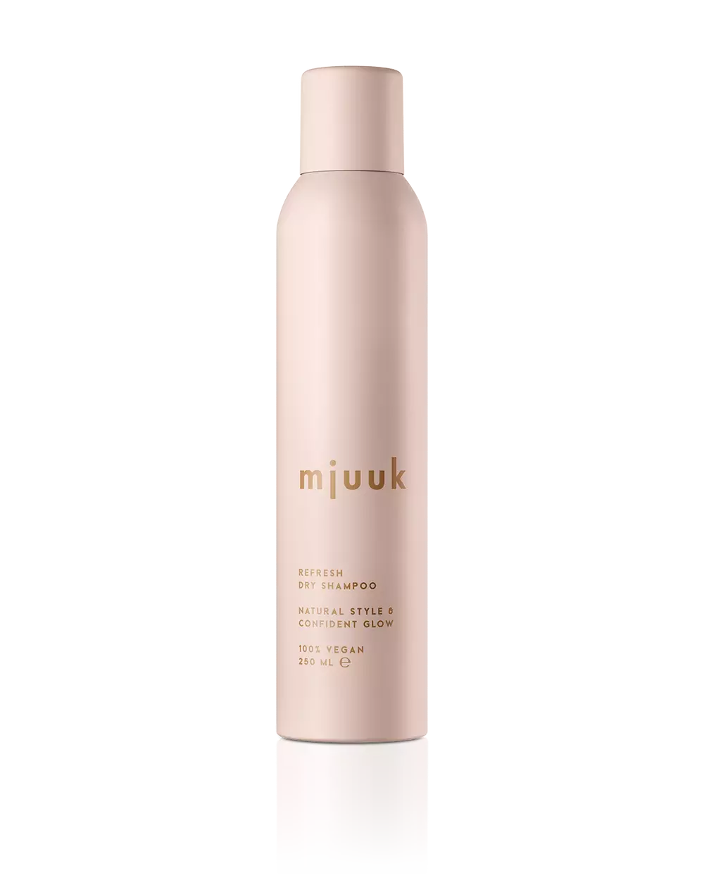 MJUUK REFRESH DRY SHAMPOOn ainutlaatuinen tuotekoostumus poistaa välittömästi hiusten ja hiuspohjan rasvaisuutta ja raikastaa tyven. Tuote auttaa tuomaan hiuksiin kevyen ja puhtaan tunteen pesukertojen välillä. Sopii kaikille hiustyypeille. Käyttöohjeet: Ravista hyvin ennen käyttöä. Suihkuta kuiviin hiuksiin noin 15 cm päästä keskittyen hiustyveen ja harjaa hiukset. Voit lisätä tuotetta päivän aikana tarvittaessa.