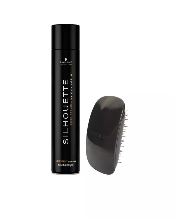 1. Silhouette Super Hold Hairspray 500ml - Erittäin voimakas hiuskiinne. 2. Tangle Mouse All Black - Täydellinen harja selvittämään hiuksesi kivuttomasti ja helposti. Harja ei vahingoita hiuksiasi ja sopii kaikille hiustyypeille.