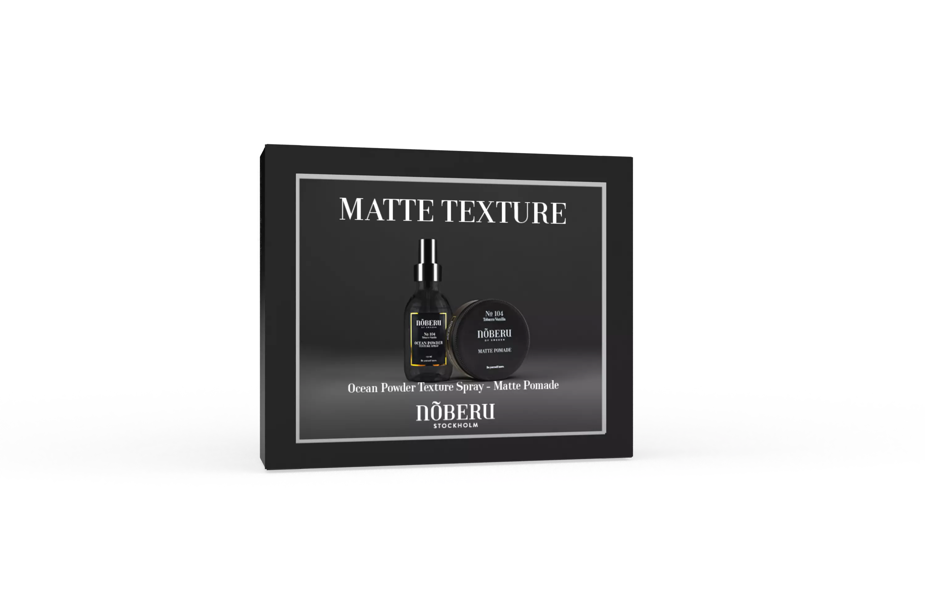 1. Noberu Stockholm Ocean Powder Texture Spray 150ml - Pitoa ja tuuheutta antava rakennesuihke. Rakennesuihke on ainutlaatuinen yhdistelmä suolasuihketta ja vahaa. Se on kahden välttämättömän tuotteen yhdistelmä yhdessä tuotteessa. Tuote antaa täyteläisyyttä hennoille tai elottomille hiuksille sekä liikkuvaa tekstuuria normaaleille hiuksille. 2. Noberu Stockholm Matte Pomade 80mll - Mattavaha. tuote antaa hiuksille luonnollisen näköisen mattapinnan ja ryhtiä, joka auttaa muotoilua kestämään koko päivän. Käyttöohje: Hiero pieni määrä Matte Pomade -tuotetta tasaisesti kämmeniisi ja levitä se sitten kosteisiin tai kuiviin hiuksiin. Muotoile.
