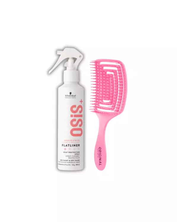 1. Osis+ Flatliner 200ml - Lämmöltä suojaava hiussuihke, joka sopii täydellisesti päivittäiseen käyttöön ennen hiusten lämpömuotoilua. 2. Original Eco Brush pinkki - Kestävä ja tehokas hiusharja, joka on suunniteltu hoitamaan hiuksiasi ympäristöystävällisesti. Ympäristöystävällisistä materiaaleista valmistetussa harjassa on pehmeät mutta kestävät harjakset, jotka ovat hellävaraisia päänahalle ja hiuksille. Sopii sekä märkiin että kuiviin hiuksiin.